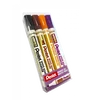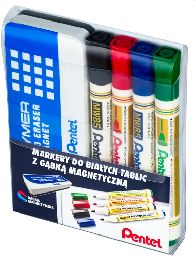 Produkty biurowe marki Pentel z tej kategorii występują w wielu wersjach: olejnej, wodoodpornej, ze ściętą lub zaokrągloną końcówką, z praktycznym tłoczkiem - od Ciebie zależy, na który z polecanych przez nas wariantów się zdecydujesz. Markery Pentel można kupować pojedynczo lub w wygodnych zestawach, w których zazwyczaj znajduje się kilka kolorów. Niektórych zainteresuje pewnie również fakt, że część produktów z tej kategorii powstaje z materiałów pochodzących z recyklingu.