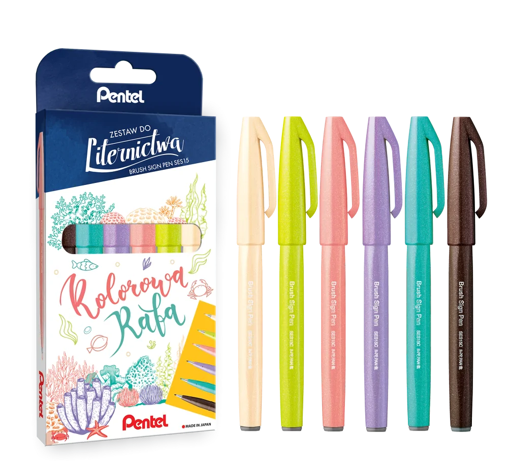 Zestaw 6 pisaków pędzelkowych SES15C do kaligrafii i liternictwa jest dedykowany dla pasjonatów sztuki pięknego pisania oraz kolorowych notatek. Postaw na japońską jakość pisaków do kaligrafii. Sprawdzą się idealnie u początkujących oraz zaawansowanych użytkowników.