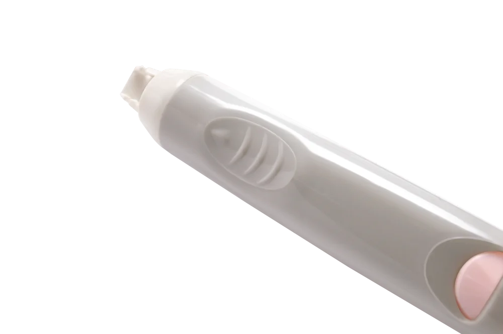 Prosta obsługa korektora. Chowana końcówka zabezpiecza taśmę przed uszkodzeniem.