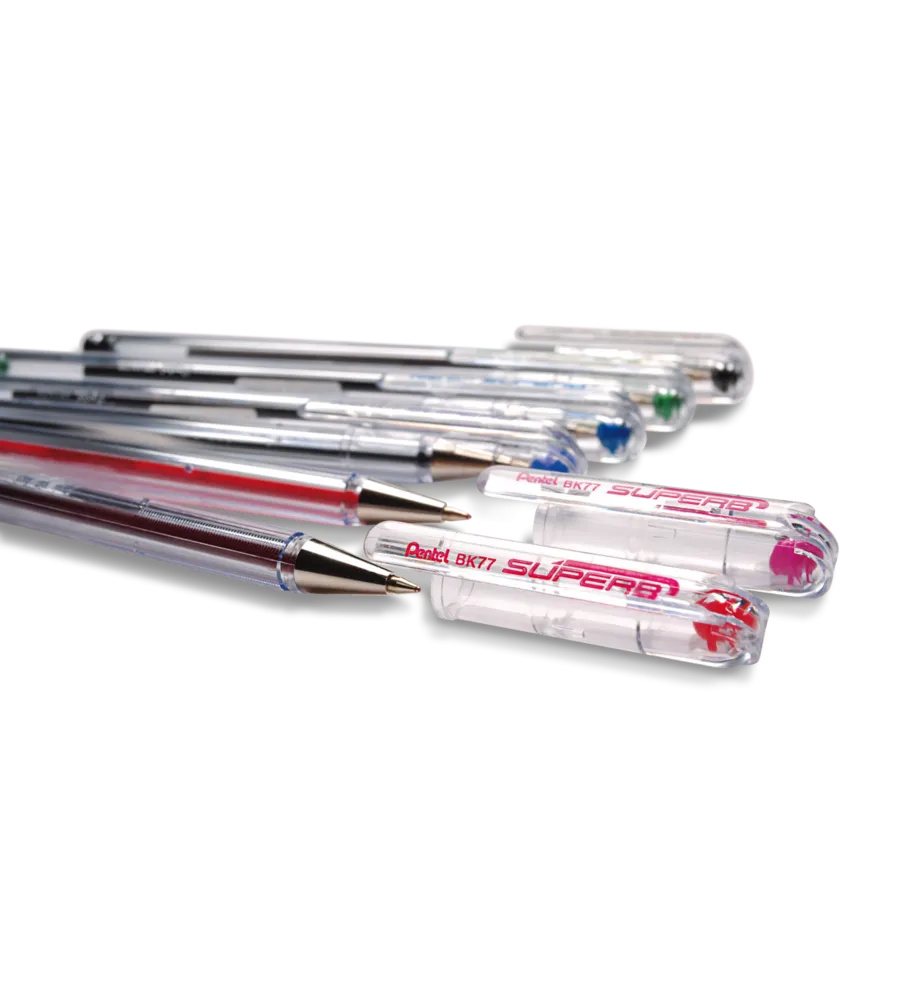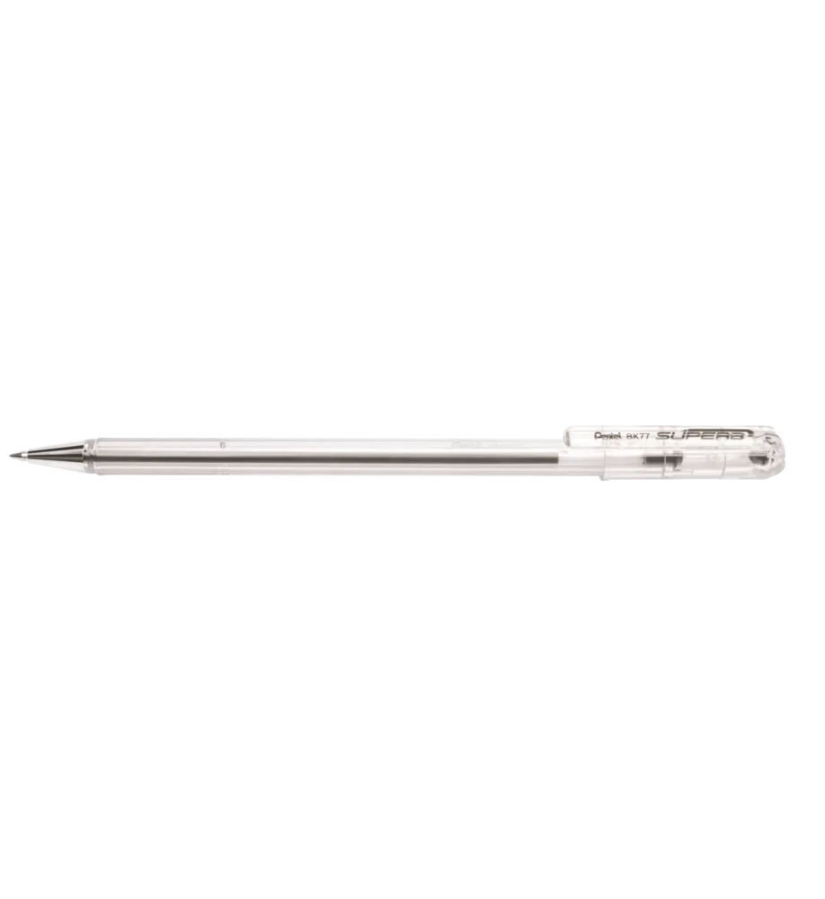 Klasyczny i bardzo popularny długopis Pentel BK77 SuperB, słynący ze swojej niezawodności. Gładko pisze, nie przerywa, nie brudzi i nie pozostawia kleksów. Posiada bardzo długą linię pisania wynoszącą prawie 2 km. Przezroczysta obudowa. Nasadka posiada silikonową kulkę zabezpieczającą wkład przed wysychaniem. Końcówka 0,7mm wykonana z "niklowanego srebra". Idealny do codziennego pisania i bazgrania. Na wkład wymienny BKL7. . Obudowa posiada wytłoczony prążkowany, zawierający 50 nacięć uchwyt poprawiający jakość pisania.