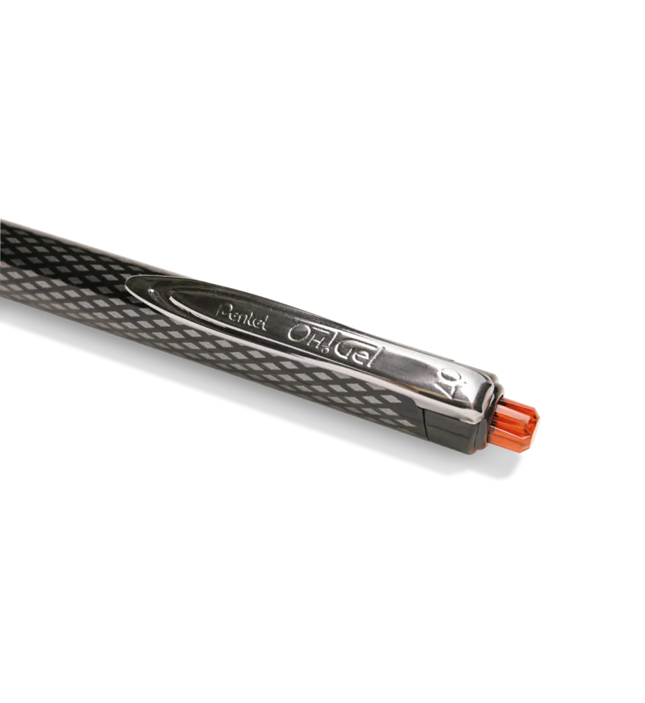 Długopis żelowy OH! Gel do częstego pisania w biurze i szkole. Bezkwasowy, pigmentowy, szybkoschnący tusz żelowy o bardzo ciemnym kolorze nie blaknie, nie rozmazuje się, jest odporny na szkodliwe działanie czynników zewnętrznych (jest światło i wodoodporny). Gładki przepływ tuszu do końcówki zapewnia lekkie pisanie. Korpus z motywami rombu w ciemnej stylistyce tła ze srebrnymi wykończeniami. Solidna obudowa dopasowuje się do ręki – gumowy uchwyt (bez lateksu) zabezpiecza palce przed ślizganiem. Dostępny w trzech wyrazistych kolorach: czarnym, niebieskim, czerwonym. Na wkłady wymienne KFR7. Model w atrakcyjnej cenie.