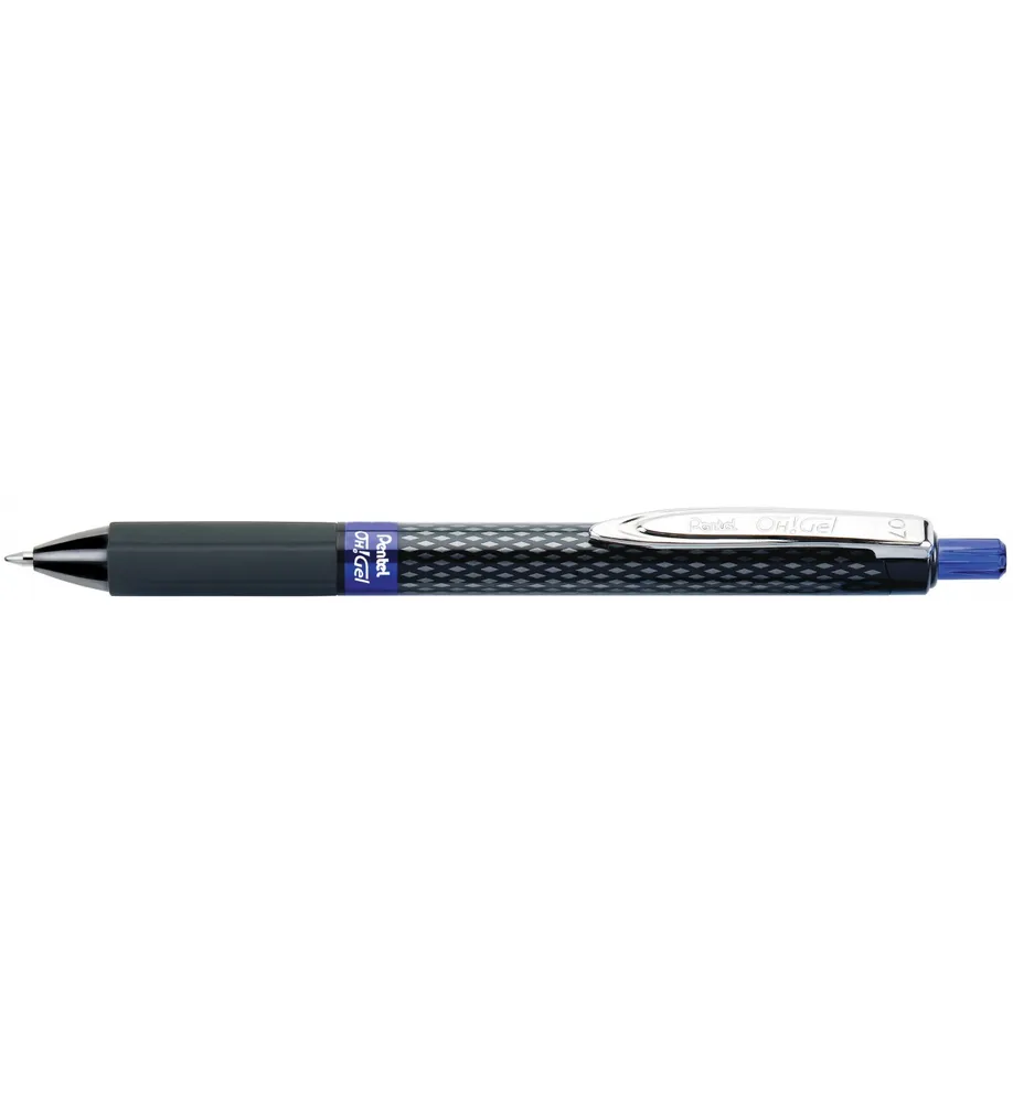 Długopis żelowy OH! Gel do częstego pisania w biurze i szkole. Bezkwasowy, pigmentowy, szybkoschnący tusz żelowy o bardzo ciemnym kolorze nie blaknie, nie rozmazuje się, jest odporny na szkodliwe działanie czynników zewnętrznych (jest światło i wodoodporny). Gładki przepływ tuszu do końcówki zapewnia lekkie pisanie. Korpus z motywami rombu w ciemnej stylistyce tła ze srebrnymi wykończeniami. Solidna obudowa dopasowuje się do ręki – gumowy uchwyt (bez lateksu) zabezpiecza palce przed ślizganiem. Dostępny w trzech wyrazistych kolorach: czarnym, niebieskim, czerwonym. Na wkłady wymienne KFR7. Model w atrakcyjnej cenie.