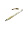 Długopis żelowy w dekoracyjnych, metalicznych kolorach. Do zdobienia kartek okolicznościowych, zaproszeń, bilecików prezentowych, laurek, ilustracji. Końcówka 0,8 mm zapewnia intensywną linię o grubości 0,35 mm. Smukła obudowa i gumowy uchwyt gwarantuje komfortowe trzymanie. Przezroczysty korpus pozwala na kontrolę tuszu. Długopis jest solidny oraz trwały. Do wyboru: złoty srebrny i biały. Model na wkłady wymienne KF8.