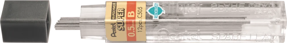 Grafity Super Hi-Polymer 0,5mm zastąpiły popularne grafity 100 Hi-Polimer. C505 to doskonałe połączenie syntetycznej żywicy, grafitu i węgla, tworząc w ten sposób wyjątkowo trwałe i jednocześnie elastyczne wkłady ołówkowe. Nie zawierają szkodliwych substancji.
