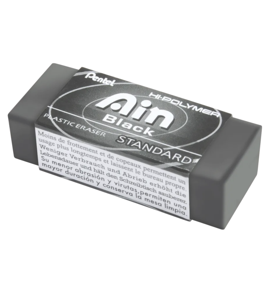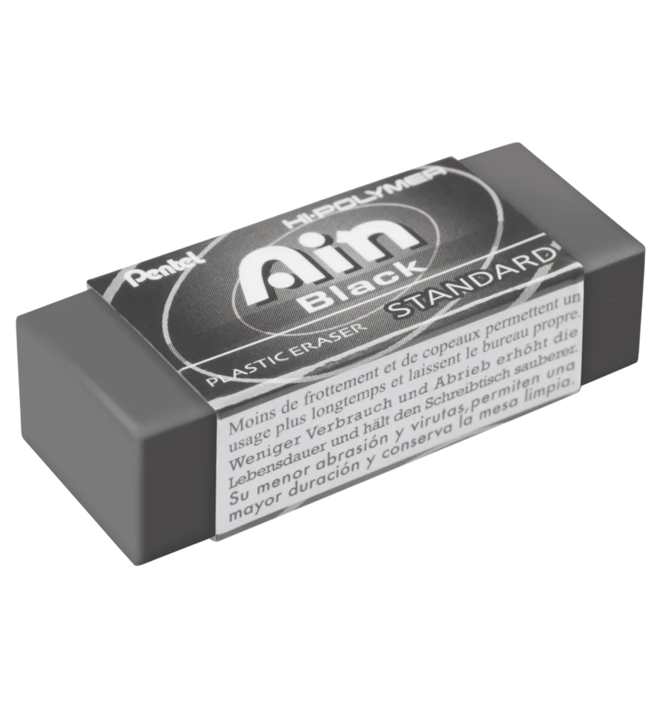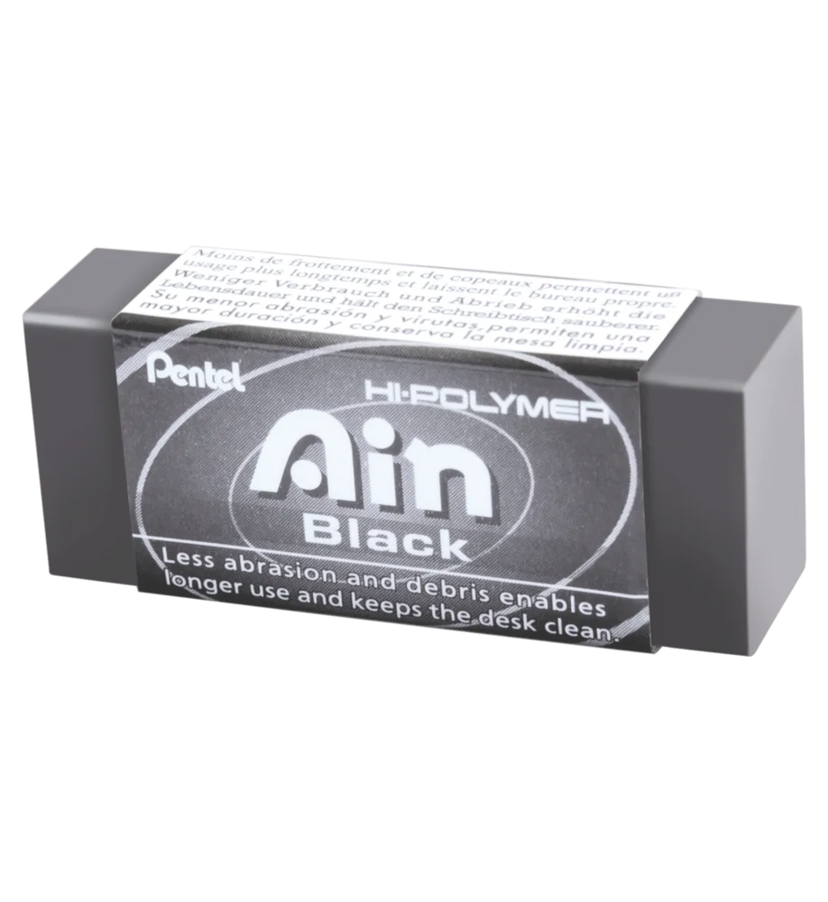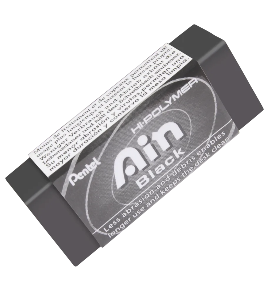 Czarna gumka ołówkowa Hi-Polymer. Wyjątkowo giętka i miękka, działa bez potrzeby mocnego dociskania do powierzchni. Nie narusza struktury papieru, pozostawia zeszyty, dokumenty oraz notatki w doskonałym stanie. Nie pęka, nie twardnieje, nie brudzi się. Pozostawia małą ilość ścinek. Nie zawiera szkodliwych substancji takich jak lateks i ftalany. Jest bezpieczna dla dzieci.