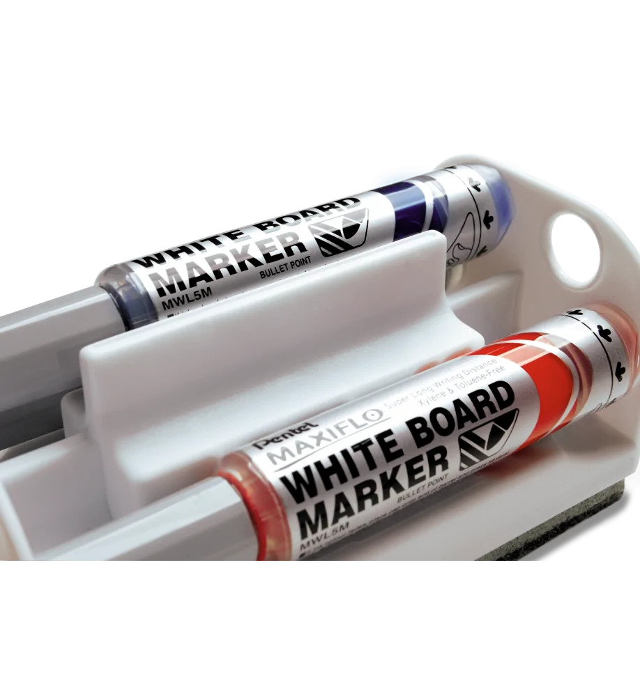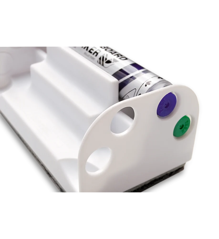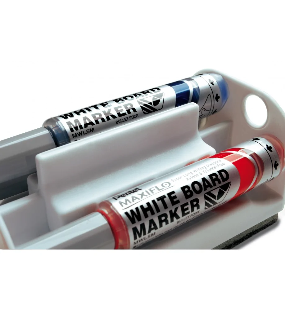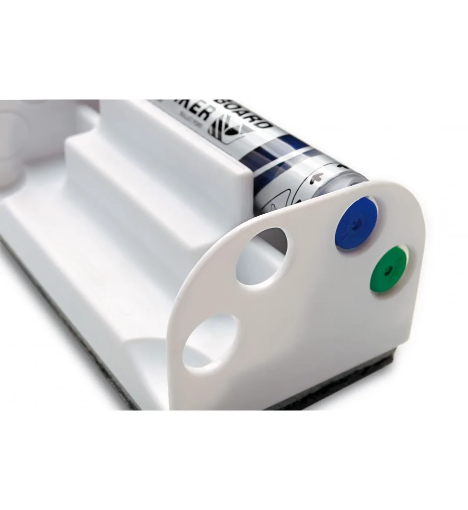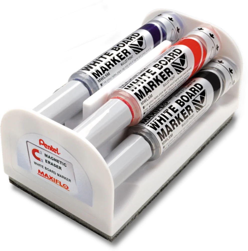 Zestaw 4 markerów MAXIFLO do białych i ceramicznych tablic. Płynny tusz dozowany w razie konieczności nawilżenia końcówki za pomocą tłoczka (zamiast tradycyjnego sączka). Marker pisze wyrazistą linią aż do ostatniej kropli tuszu. Kilkakrotnie dłuższa linii pisania niż w standardowych markerach z sączkiem - 1100 m. Nie zawiera substancji trujących ksylenu, toluenu ani polichlorku winylu. Nadaje się również na papier, plastik, karton. Wykonany w 50% z materiałów przetworzonych. Zestaw MWL5M-ST4ABCDPL / (MWL5M-4N) zawiera 4 markery (czarny, czerwony, niebieski, zielony) oraz magnetyczną gąbkę.