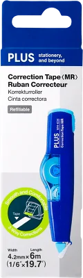 Praktyczna zatyczka chroni taśmę, a jej szybki mechanizm otwierania i zamykania sprawia, że korektor jest zawsze gotowy do użycia.