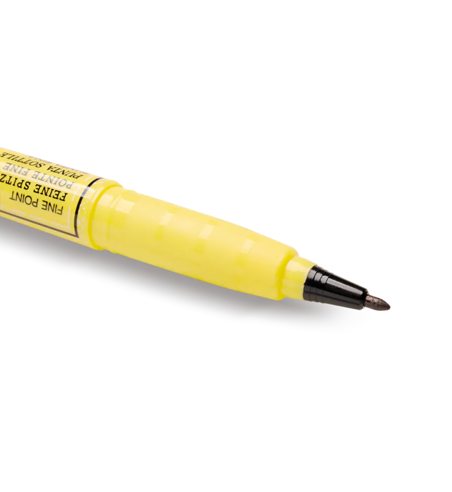 Cienka końcówka. Wyraźna, głęboka czerń tuszu, który doskonale wnika w tkaninę bez zalewania. Klasyczny, jednorazowy, nie zawiera ksylenu i toluenu. Bezpieczny dla użytkowników, trwały, wygodny w użyciu.