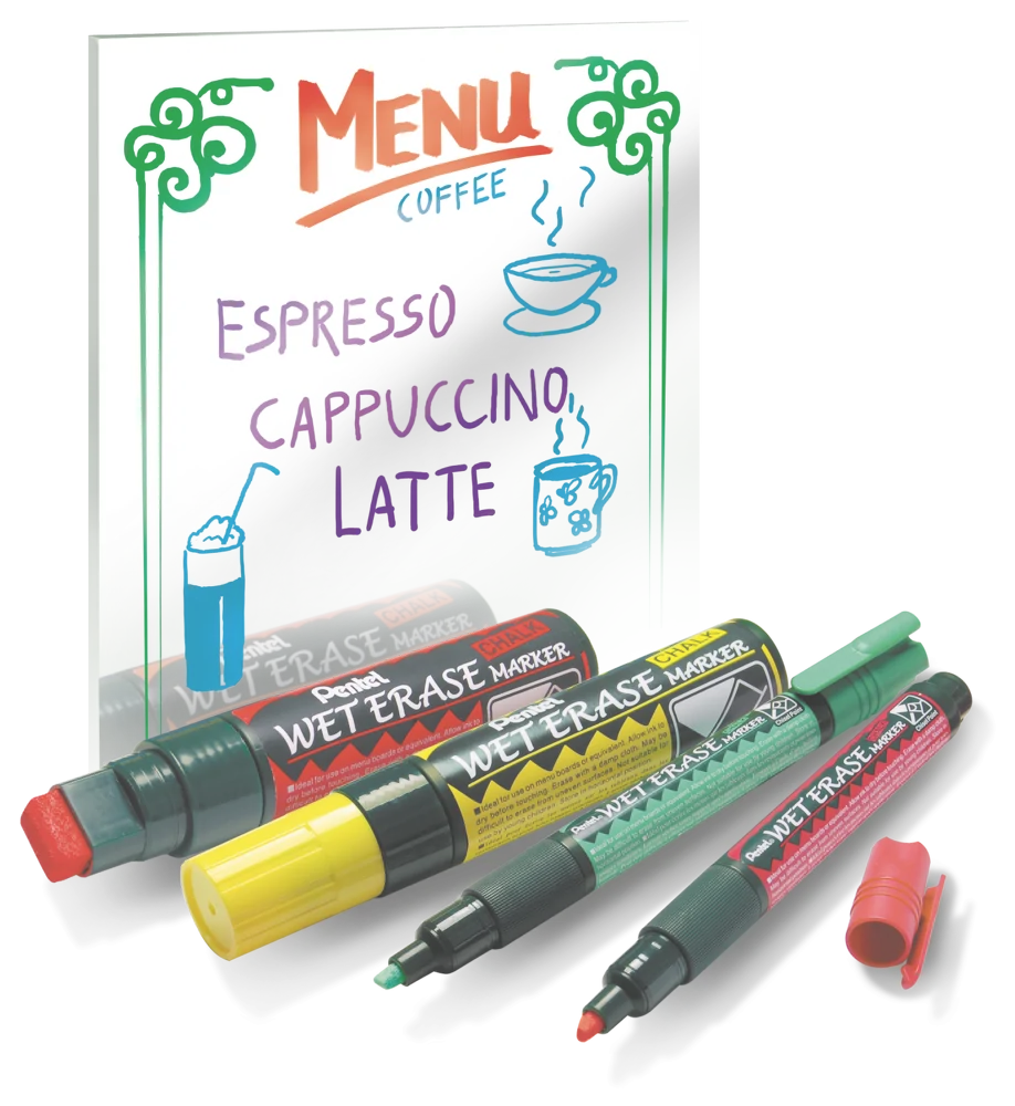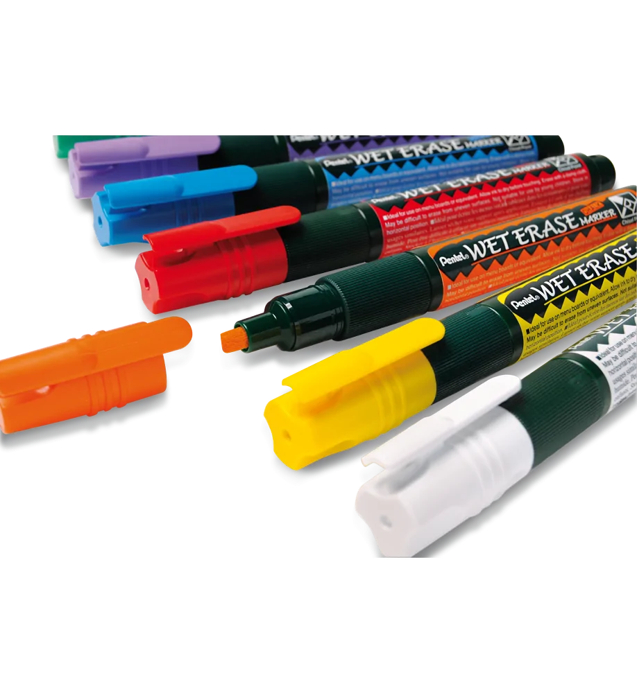 Marker kredowy o mocnych, intensywnych kolorach. Produkt wybierany przez restauratorów (do ekspozycji menu), przedsiębiorców, właścicieli barów, sklepów i komisów samochodowych. Tusz po wyschnięciu jest odporny na lekkie opady deszczu. Idealny do wykonywania ozdób i dekoracji świątecznych. Wykonany w 69% z materiałów przetworzonych. Dostępny w 8 kolorach tuszu: czarnym, czerwonym, niebieskim, zielonym, pomarańczowym, żółtym, fioletowym, białym.