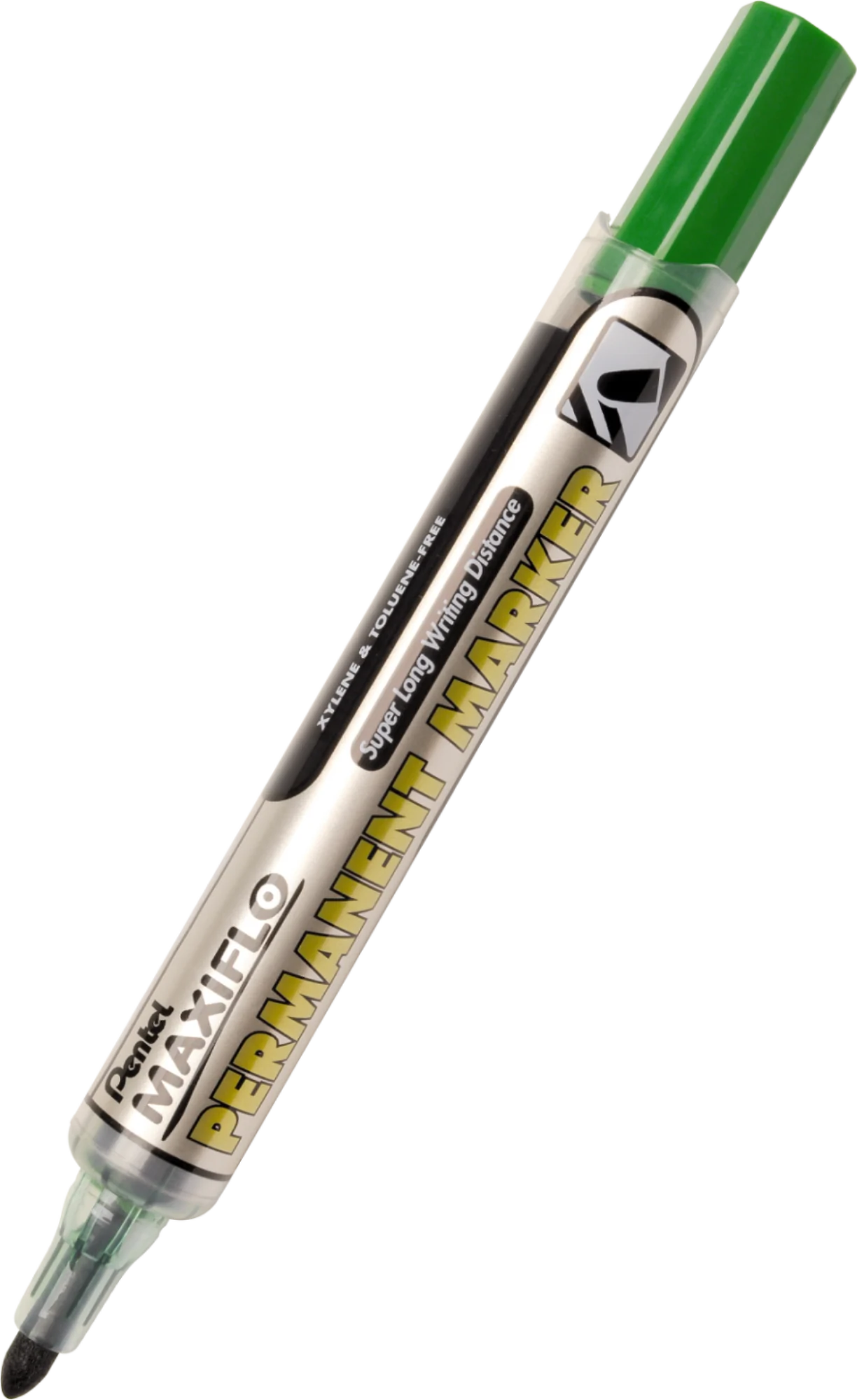 Wykonany w technologii MAXIFLO. Ekonomiczny system dozowania tuszu do końcówki – za pomocą tłoczka. Dwukrotnie dłuższa linia pisania niż w standardowych markerach permanentnych. Płynny tusz na bazie alkoholu. Bezpieczny w użytkowaniu – nie zawiera ksylenu i toluenu – substancji szkodliwych dla zdrowia i środowiska. Do wyboru kolor: czarny, czerwony, niebieski, zielony.