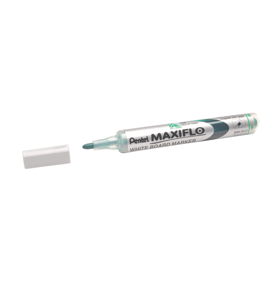 Marker do białych i ceramicznych tablic. Płynny tusz dozowany w razie konieczności nawilżenia końcówki za pomocą tłoczka (zamiast tradycyjnego sączka). Marker pisze wyrazistą linią aż do ostatniej kropli tuszu. Kilkakrotnie dłuższa linii pisania niż w standardowych markerach z sączkiem - 1200 m. Nie zawiera substancji trujących ksylenu ani toluenu. Nadaje się na papier, plastik, karton, tablice suchościeralne.