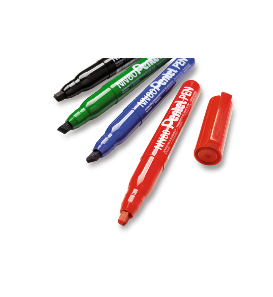 Marker wodoodporny do pisania po rozmaitych powierzchniach, jak: metal, szkło, plastik, guma, drewno, gruby papier (z wyjątkiem ważnych dokumentów i białych tablic). Grubość linii pisania wynosi 2,72 mm. Ergonomiczny, wygodny korpus do komfortowego trzymania, szczelna nasadka z funkcjonalnym klipem. Nie zawiera substancji szkodliwych ksylenu i toluenu. Produkt ekologiczny, wykonany w 85% z materiałów przetworzonych. Do wyboru kolor: czarny, czerwony*, niebieski*.  *- brak w magazynie, kolor na zamówienie.