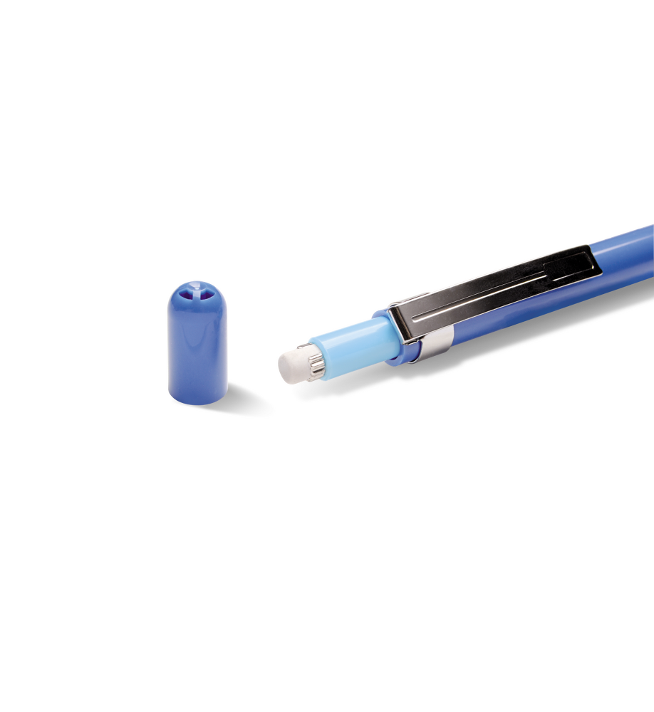 Posiada gumowy uchwyt; metalowy, zdejmowany klips oraz gumkę wymienną Z2-1.