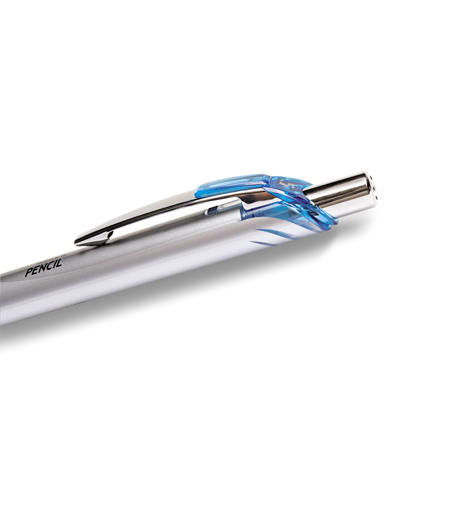 Ołówek automatyczny EnerGize w stylistyce linii EnerGel. Podwójny system przyciskowy zabezpiecza końcówkę przed uszkodzeniem i chroni grafit przed złamaniem. Po pierwszym kliknięciu końcówka typowa dla długopisu, po drugim grafit w odpowiedniej długości. Obudowa o idealnie wyważonym punkcie ciężkości. Kolorowy, gumowy, antypoślizgowy uchwyt gwarantuje komfort użytkowania. Metalowy klips do wpięcia w notes lub kieszeń. Pasuje do kompletu z BL77 i BLN75 z serii EnerGel.