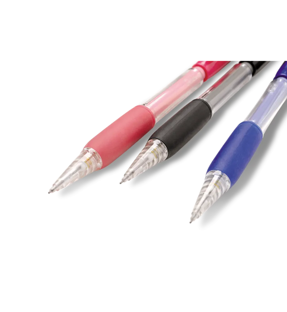Ekonomiczny i bardzo wygodny ołówek automatyczny 0,7 mm. Do codziennego pisania i szkicowania. Wysokiej jakości grafity, dozowane za pomocą systemu przyciskowego. Sprawna kontrola ilości wysuwanego wkładu. Smukła obudowa, gumowy uchwyt do wygodnego chwytania. Atrakcyjne kolory korpusów. Przystępna cena.