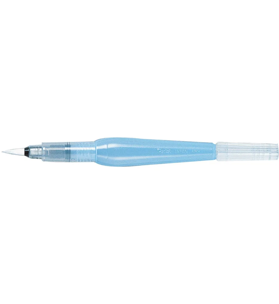 Pędzelek wodny FRH. Niezastąpiony w pracy z akwarelami i kredkami akwarelowymi. Do tworzenia ilustracji, pejzaży, melancholijnych obrazów. Prosty w obsłudze, łatwy w czyszczeniu (moczymy go w wodzie). Służy do rozmazywania kolorów. Higieniczny i wygodny w użytkowaniu. Zastępuje tradycyjny pędzelek i kubek na wodę. Przezroczysta obudowa pozwala kontrolować ilość płynu w zbiorniczku. Poprzez delikatne ściśnięcie obudowy doprowadzamy wodę do końcówki.
