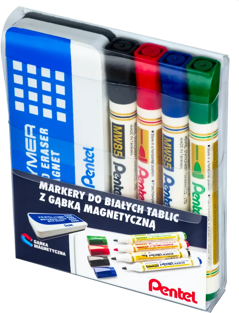 Komplet 4 ekonomicznych markerów do białych i ceramicznych tablic. Tusz jest łatwo usuwalny z powierzchni tablicy, nie pozostawia na niej trwałych śladów. Niezbędny do pracy w każdym biurze, pracowni i na uczelni. W zestawie znajduje się również gąbka magnetyczna, która z łatwością przylega do powierzchni tablicy, dzięki czemu zawsze masz ją pod ręką. Gąbka skutecznie usuwa ślady po markerach nie pozostawiając smug i zarysowań.